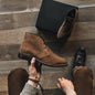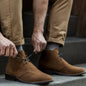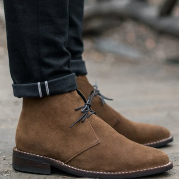 Step into refined confidence with the Cognac Weather Safe Suede Chukka Boot by Walk Wardrobe. Designed for the modern man who values both style and substance, this premium boot blends rugged durability with polished sophistication. The rich cognac weather-safe suede delivers a sleek, versatile look that transitions effortlessly from office hours to evening outings. Built using stitch-out construction for enhanced longevity, each pair is handcrafted with integrity and attention to detail. Inside, a fully lined supple glove leather interior wraps your feet in breathable luxury, while antimicrobial shock-absorbing insoles provide lasting comfort throughout the day. Premium round waxed cotton laces add a refined finish, and leather midsoles naturally mold to your stride over time for a personalized fit. Finished with durable studded rubber outsoles for reliable grip, these chukka boots are made to move with you—stylish, resilient, and ready for every season.