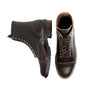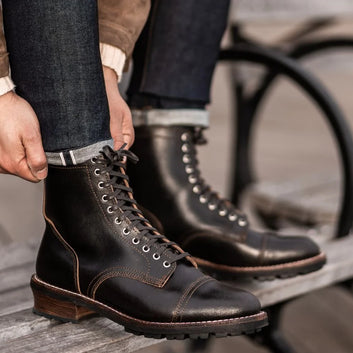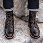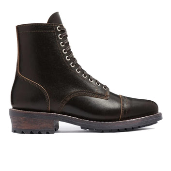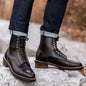 Meet the Dark Brown Waxed Flesh Leather Boot by Walk Wardrobe—where heritage craftsmanship meets modern versatility. Handcrafted in the USA, this boot is cut from rich dark brown waxed flesh genuine leather that develops character with every wear. The Goodyear welt construction ensures exceptional durability and long-term resoling potential, making it an investment in lasting style. Inside, an antimicrobial shock-absorbing insole delivers all-day comfort, while cork-bed midsoles gradually mold to your feet for a personalized fit. The stacked leather heel adds structure and refinement, perfectly balanced by durable rubber lug outsoles designed for reliable traction across city streets or weekend escapes. Finished with premium flat waxed cotton laces, this boot transitions effortlessly from tailored denim to rugged workwear. Bold, dependable, and undeniably timeless—this is craftsmanship you can feel in every step