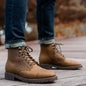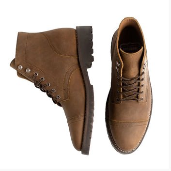 Meet the Old Town Rugged & Resilient Leather Boot by Walk Wardrobe, designed for those who demand strength, comfort, and effortless style. Crafted in a sleek matte black finish, this lace-up boot blends heritage craftsmanship with modern performance. The Goodyear welt construction ensures long-term durability, while Storm King anti-slip rubber outsoles deliver reliable traction on any surface. Inside, a fully lined supple glove leather interior pairs with Peron antimicrobial, shock-absorbing insoles for all-day comfort. Hardwearing steel shanks and cork-bed midsoles provide stability and mold naturally to your feet over time. Finished with Kevlar blend laces and custom reinforced eyelets, these boots are built to last and styled to go anywhere—from rugged outdoor wear to elevated everyday looks. Handcrafted with integrity, Old Town is resilience you can feel and style you can trust